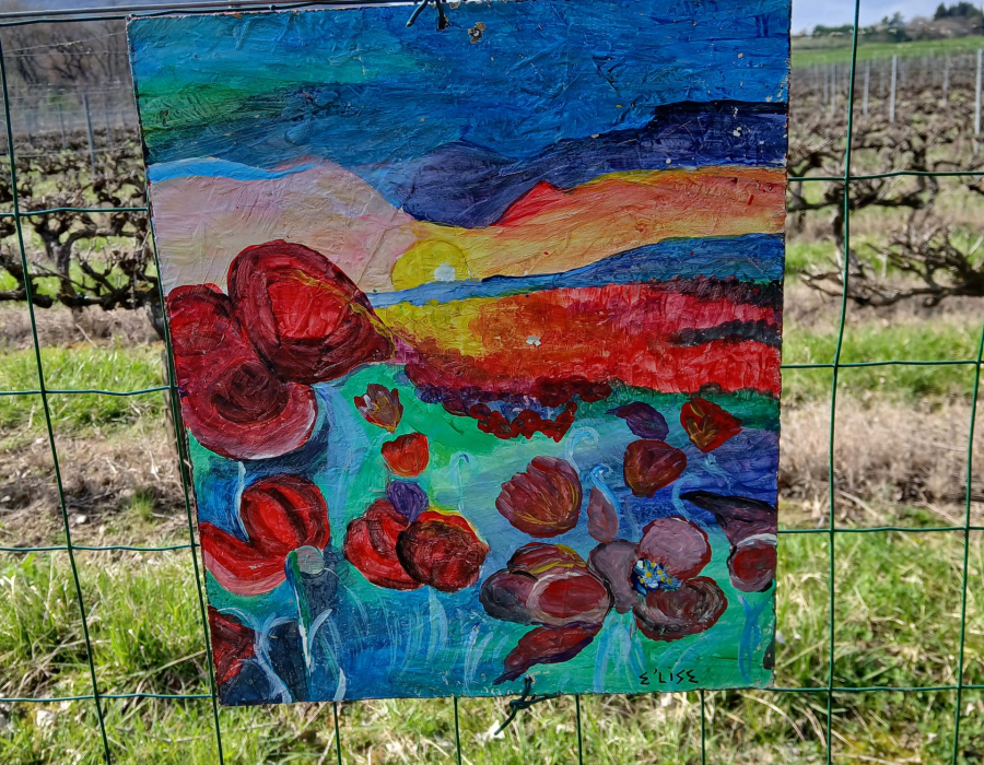 Tout en flânant sur le chemin le long de la vigne, venez contempler plus d’une soixantaine de tableaux. Ils seront visibles de novembre 2025 au printemps 2026.